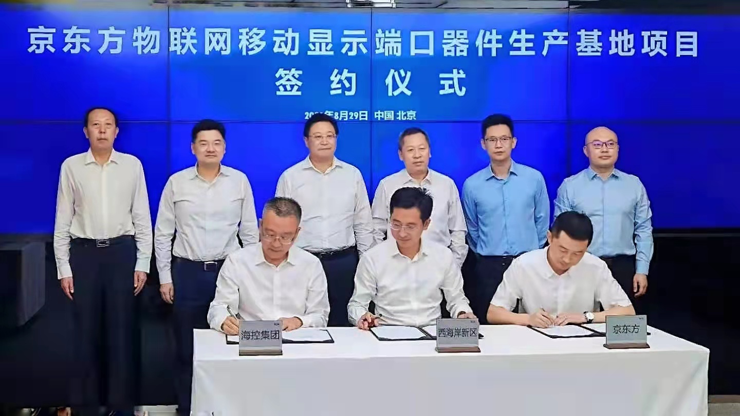 8月29日,青島西海岸新區管委、??丶瘓F和京東方科技集團股份有限公司簽署京東方物聯網移動顯示端口器件生產基地項目投資框架協議,將在青島西海岸新區投資建設全球最大的移動顯示模組單體工廠。